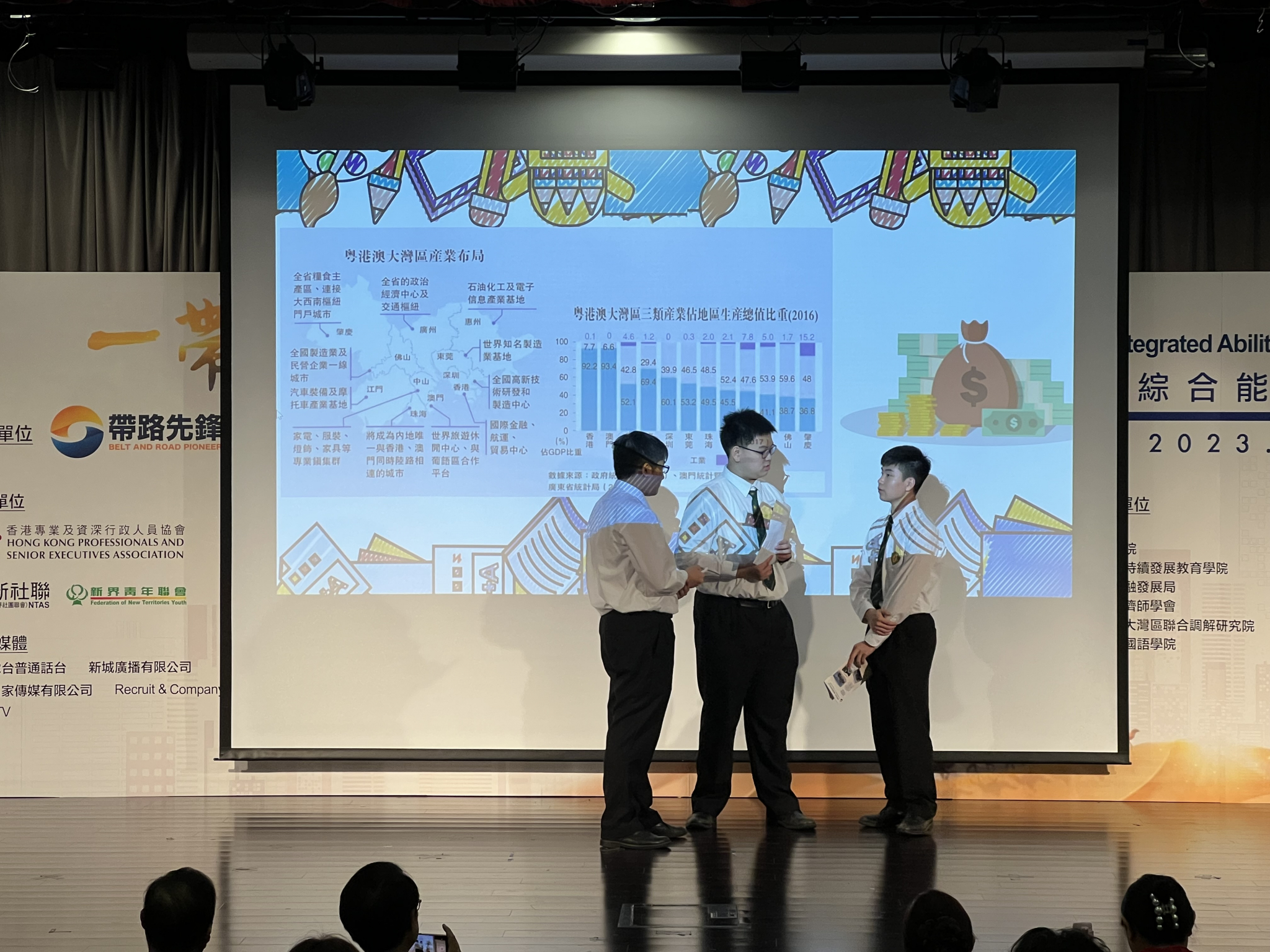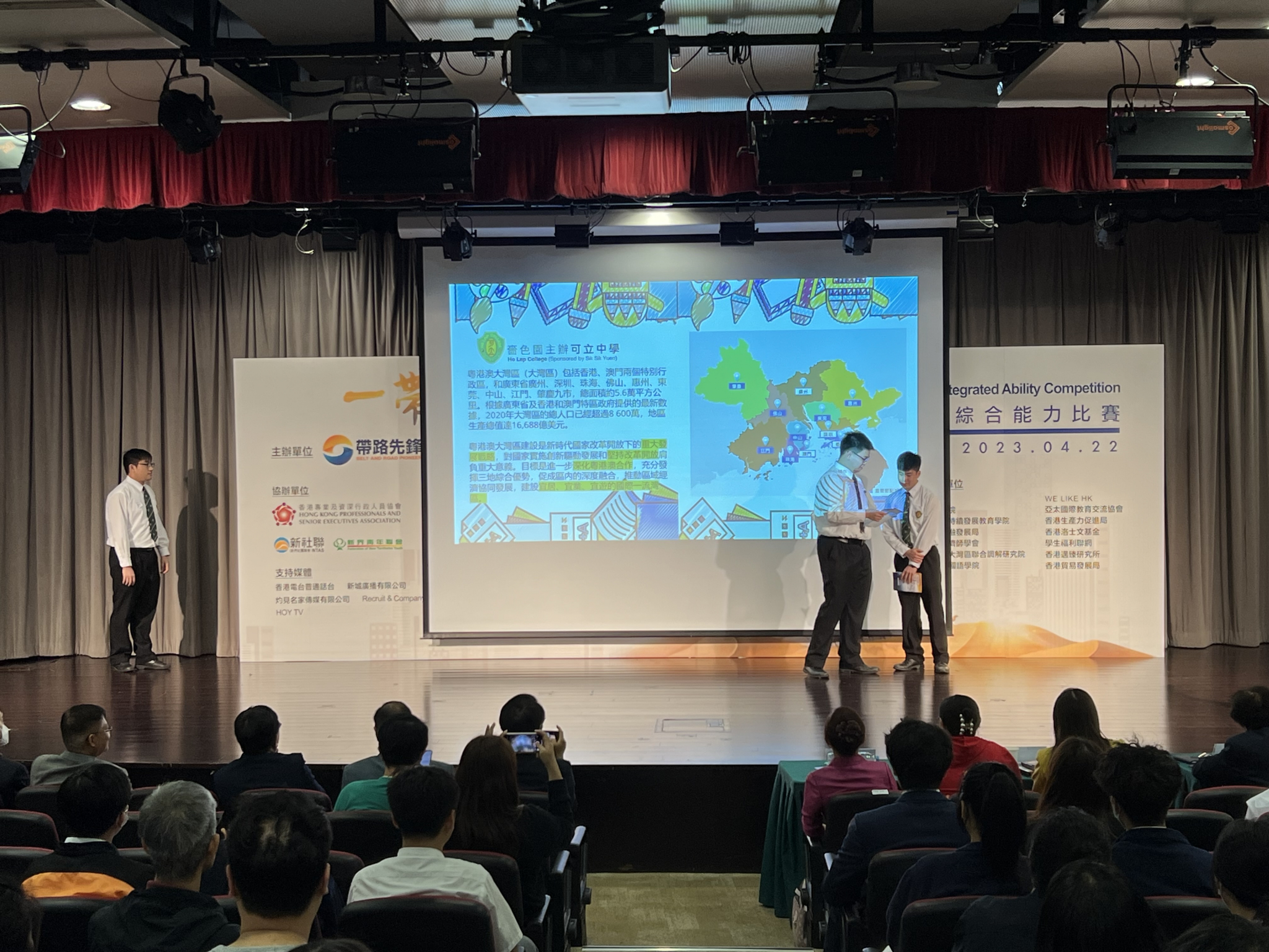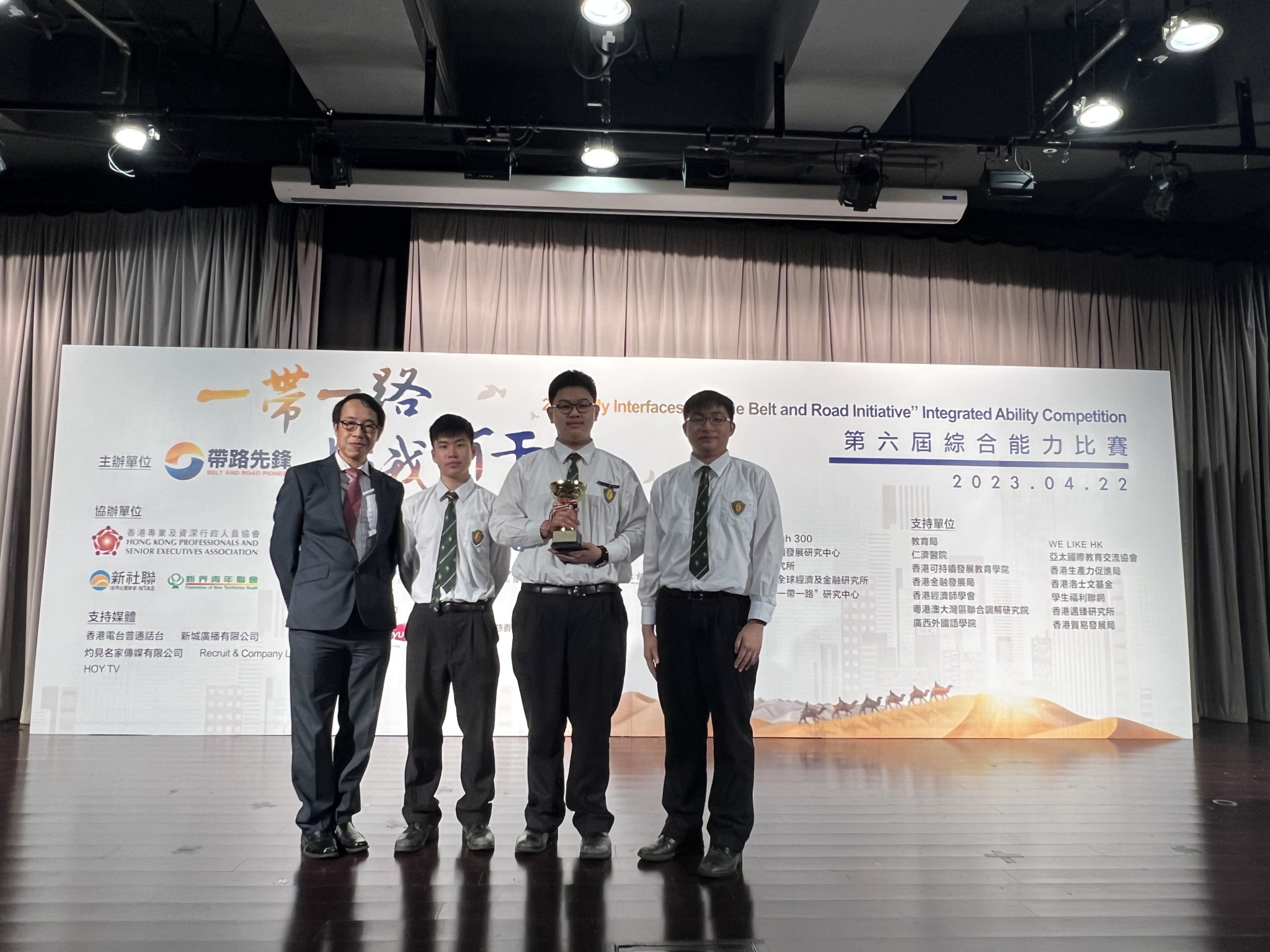 本校5C施梓豪、5C陳誦賢和3A黃裕庭同學於2023年4月22日參與由「帶路先鋒」主辦,香港專業及資深行政人員協會、新界社團聯會、新界青年聯會及多個港澳學術機構協辦的「一帶一路‧與我何干」綜合能力比賽2023。