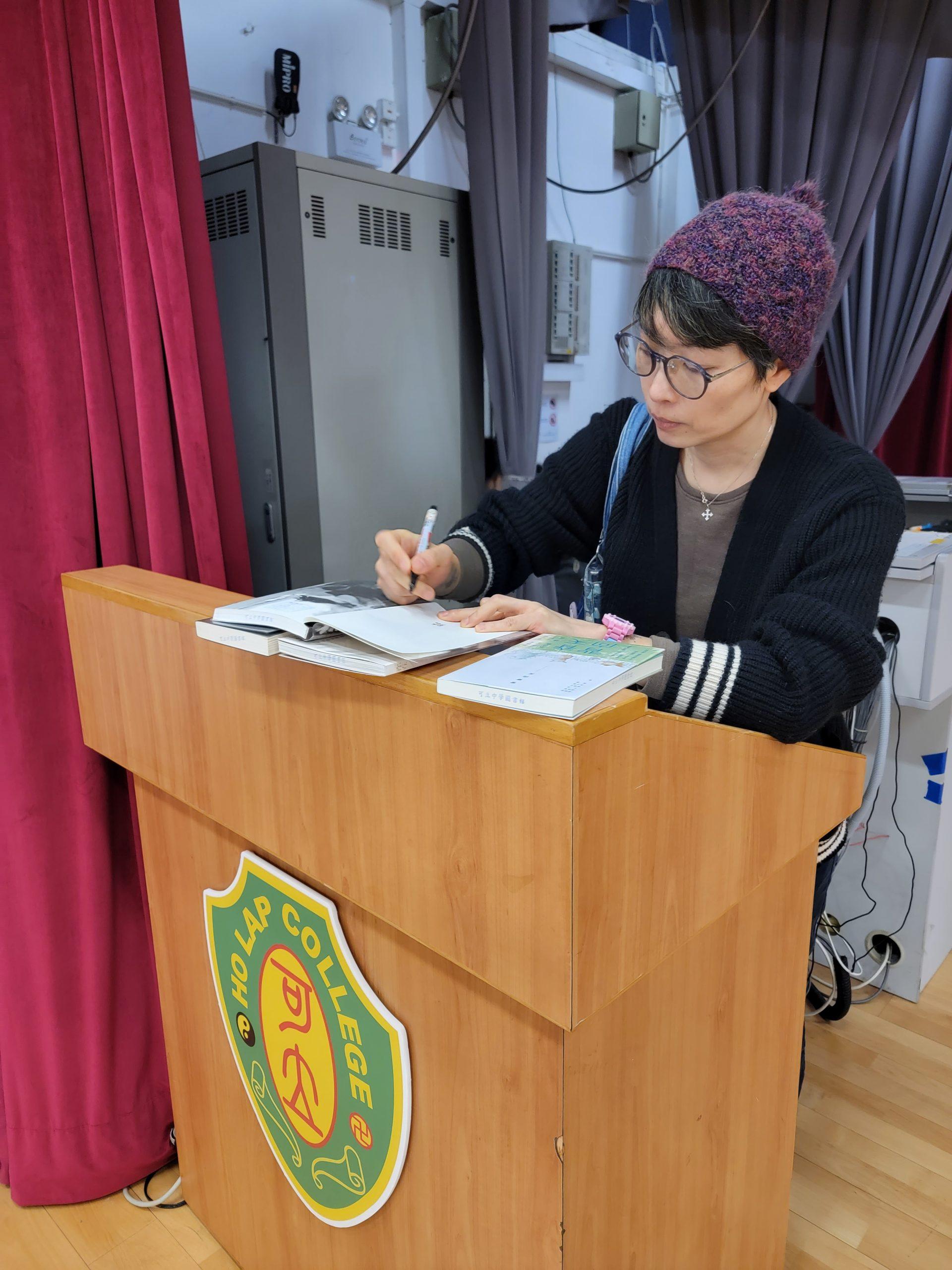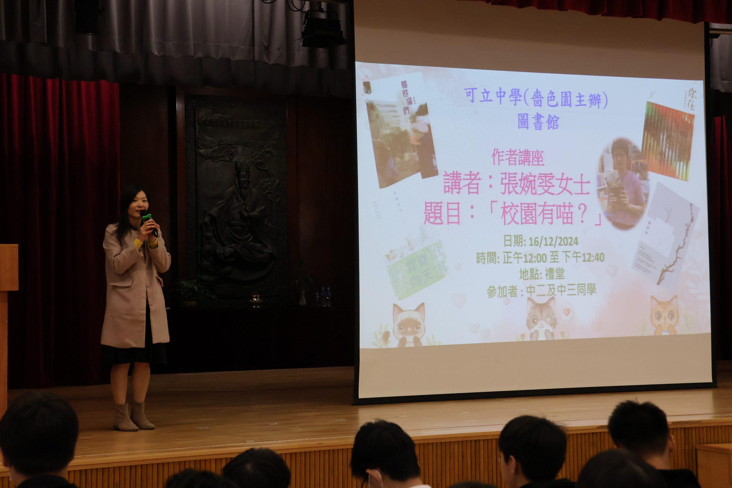 In December, the library invited the author Ms. Cheung Yuen Man to give a talk for Secondary Two and Three students. Her presentation delved into the significance of cherishing and caring for animals as a means to deepen our understanding of respect and empathy towards others, aligning closely with the theme of December. Ms. Cheung’s sharing provided us with some practical ways to embrace these values in our daily lives, reminding us to prioritize the importance of respect and empathy towards others.