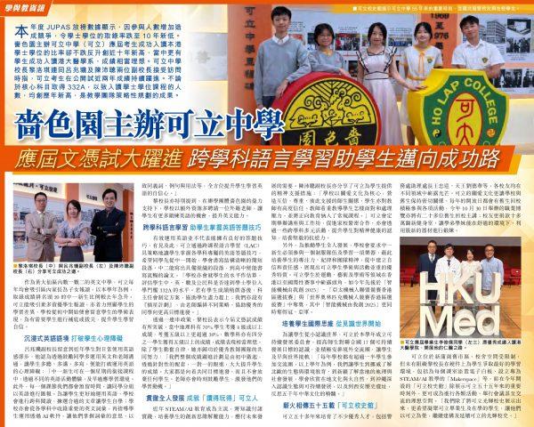 Ho Lap College Achieves Highest DSE Results in a Decade! (24-10-2025 Sing Tao Daily)