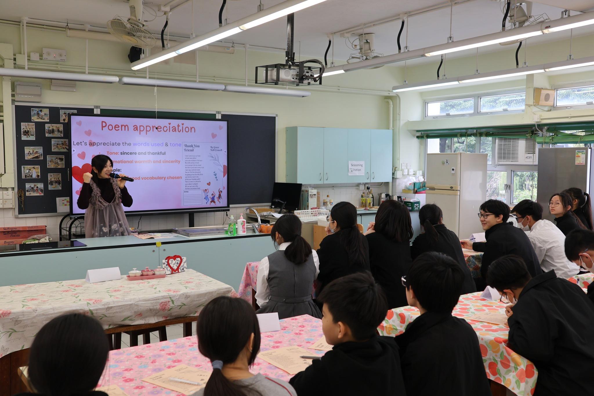 The Home Economics Department and the school Library organized a cross-curricular reading activity named “Pages of Love: Exploring Love Poems with Chocolate Fondue” right before Valentine’s Day. Through reading and appreciating selected poems, students can understand the important value of expressing gratitude to everyone such as family members, friends and teachers. The chocolate fondue not just bought them sweetness but also warmth and love.
