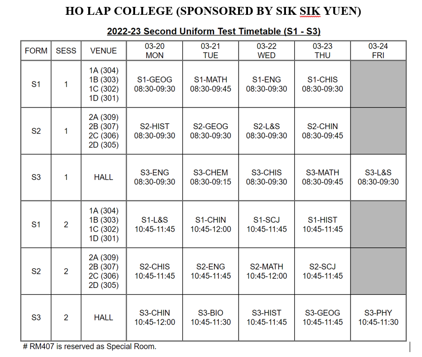 如有任何查詢,請於辦公時間內致電 2322 2229 聯絡本校校務處。