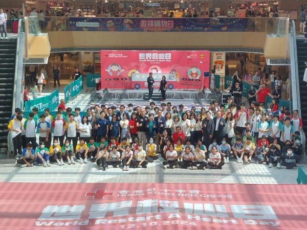 World Heart Day 2024, organized by the Hong Kong Red Cross and co-organized by Sik Sik Yuen and the SADS HK Foundation, was held on 12 October. More than 120 teachers and students from five secondary schools sponsored by Sik Sik Yuen learned Cardiopulmonary Resuscitation (CPR) and the use of Automated External Defibrillator (AED). In the presence of the Secretary for Education, Dr. Choi Yuk-lin, JP, the Vice-chairman of Sik Sik Yuen, Mr. Ma Chak-wa, MH, CStJ, guests, and principals of the secondary schools, the students performed a ‘CPR Showcase’ to demonstrate their learning achievements.